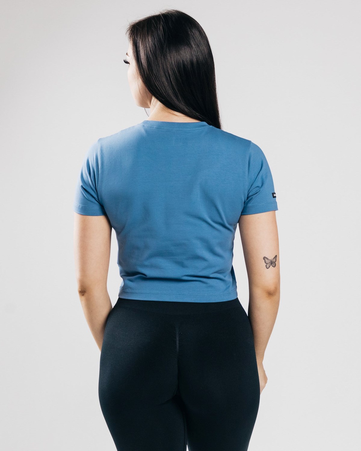 Alphalete Women Fitted Performance Crop Top Denim Blue - Alphalete CZ
