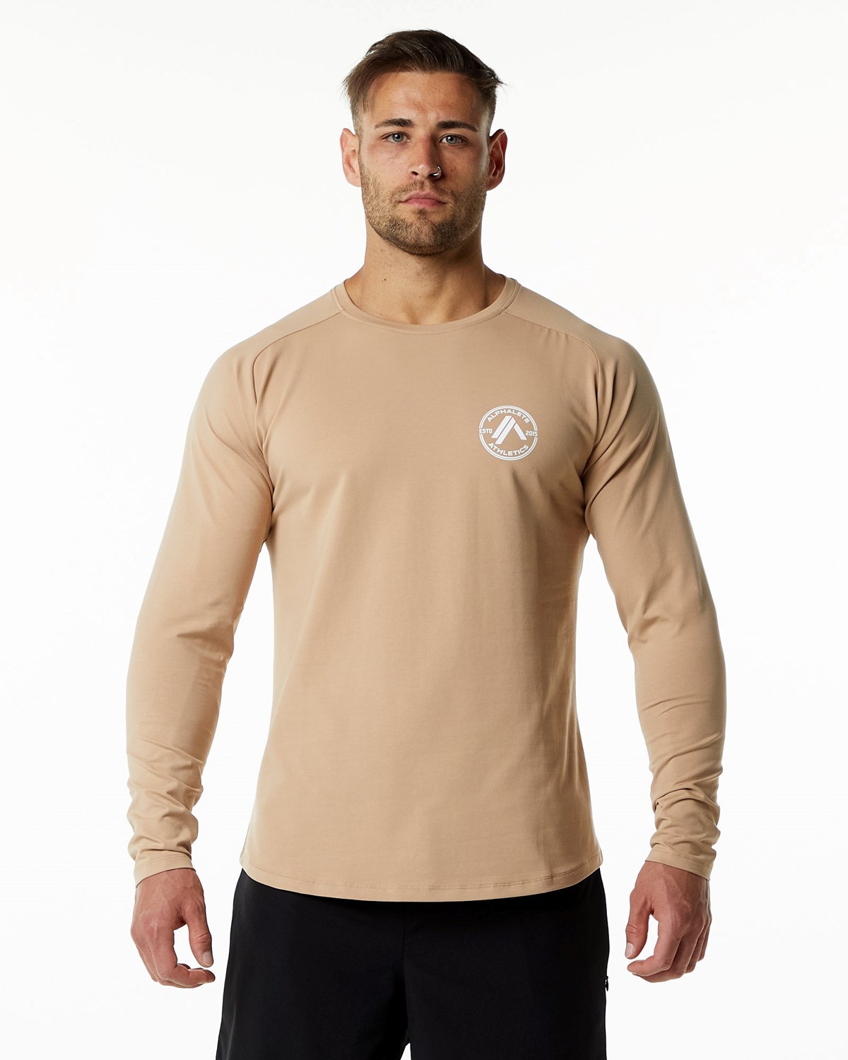 Alphalete Men Fitted Performance Long Sleeve Taupe - Alphalete CZ