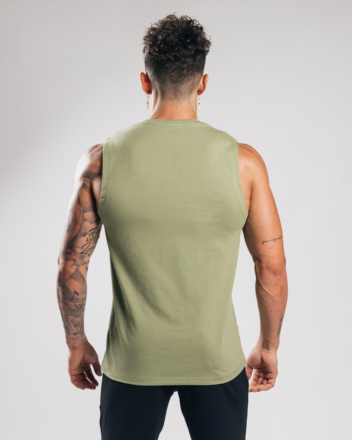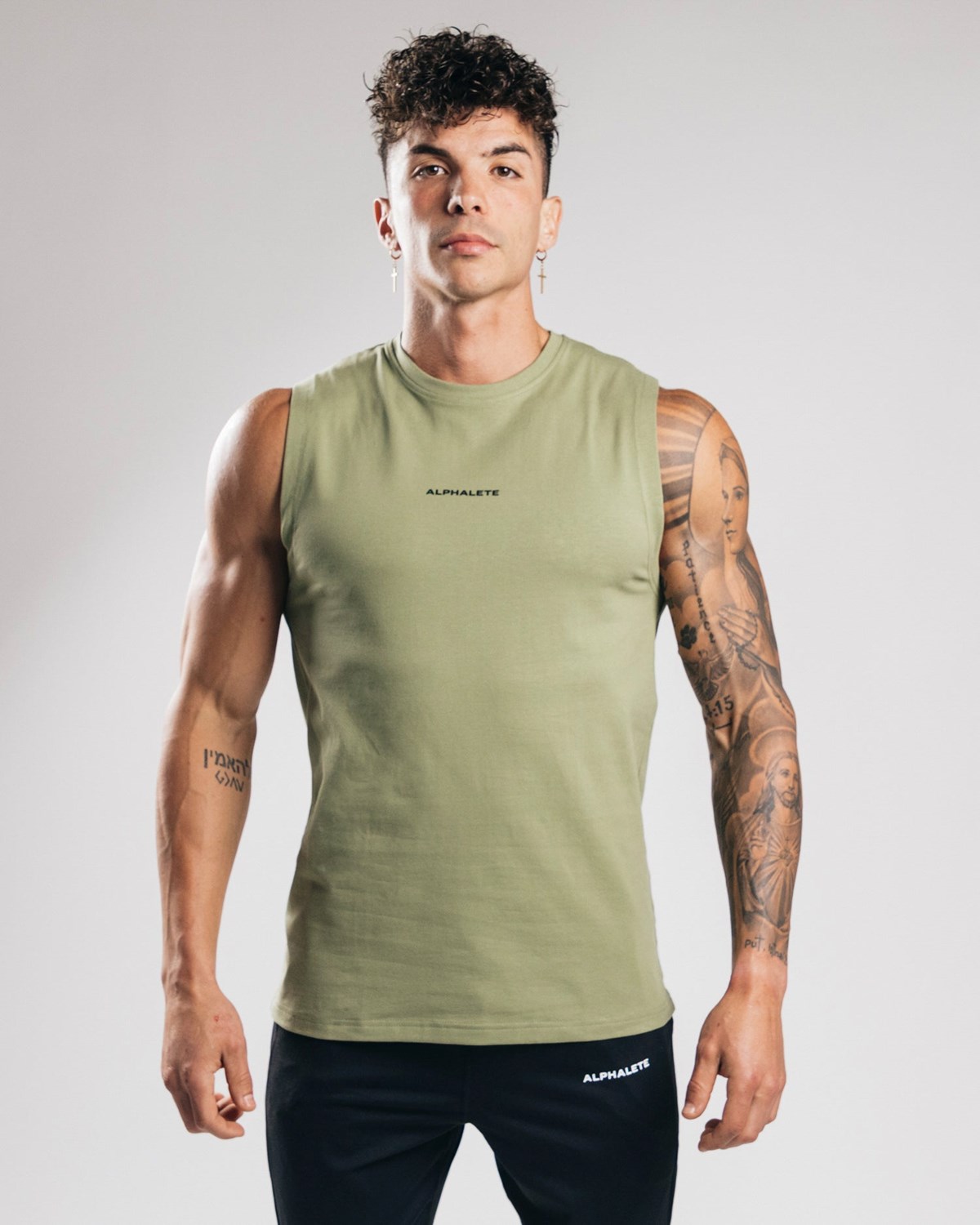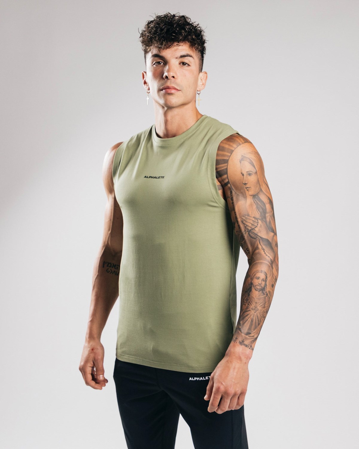 Alphalete Men Fitted Performance Tank Tactical Green - Alphalete CZ