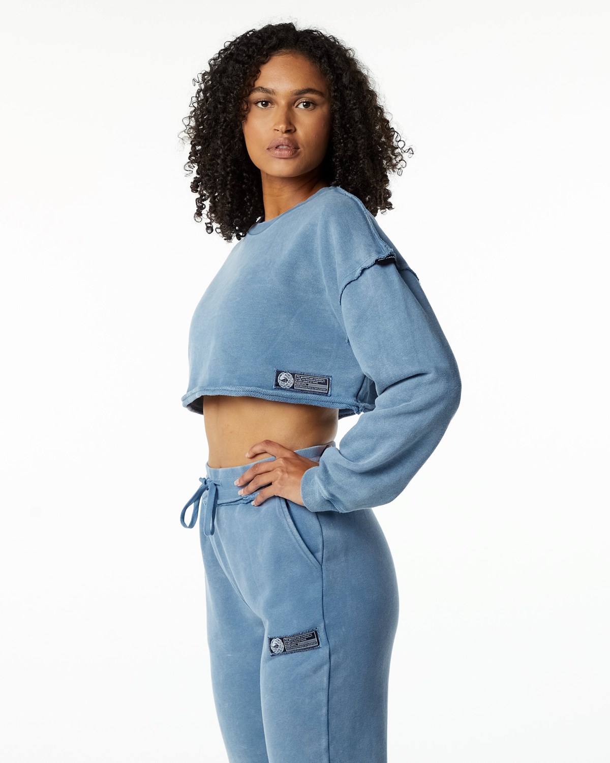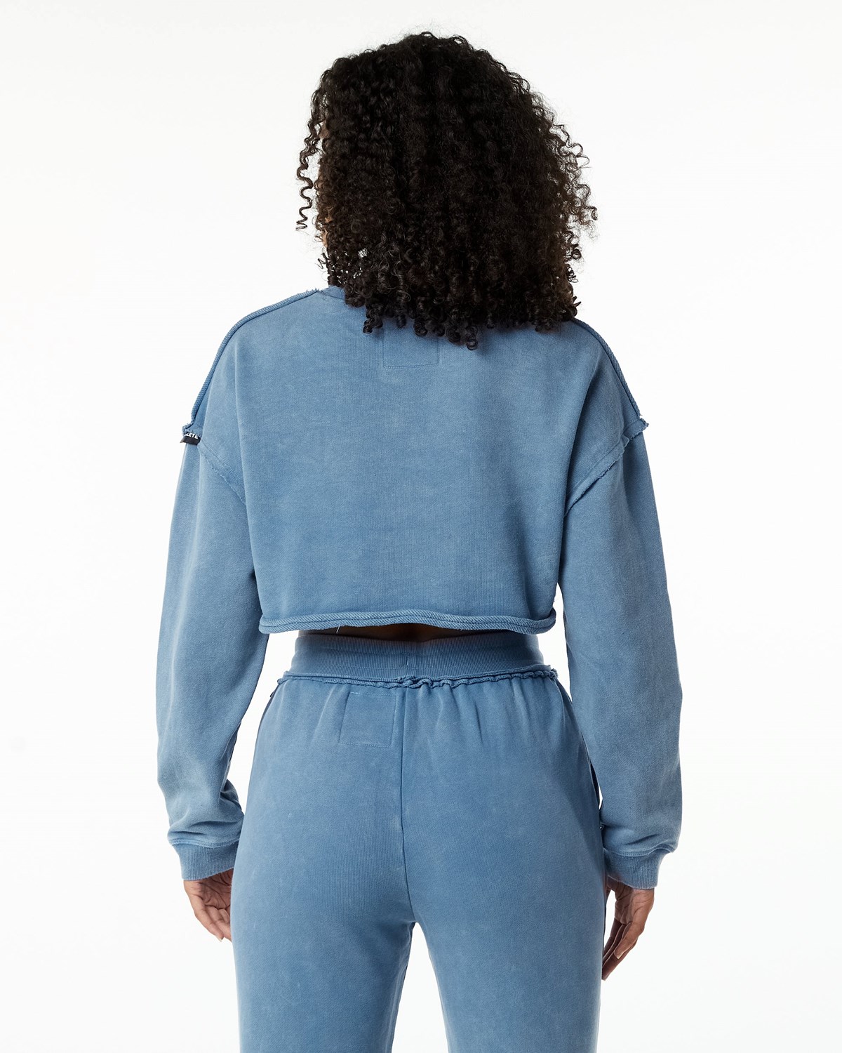 Alphalete Women Heavyweight Washed Terry Crop Pullover Celestial Blue - Alphalete CZ