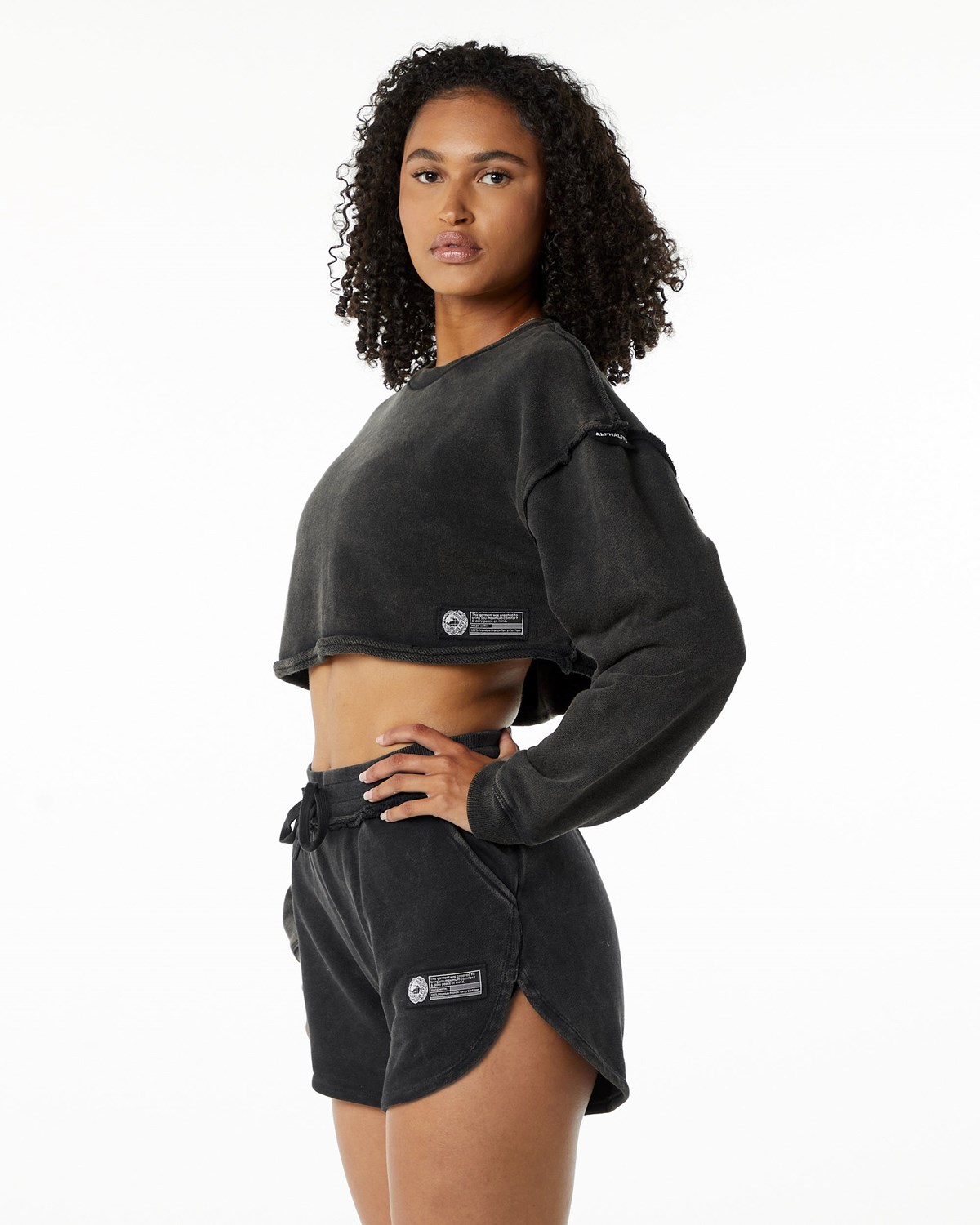 Alphalete Women Heavyweight Washed Terry Crop Pullover Onyx - Alphalete CZ