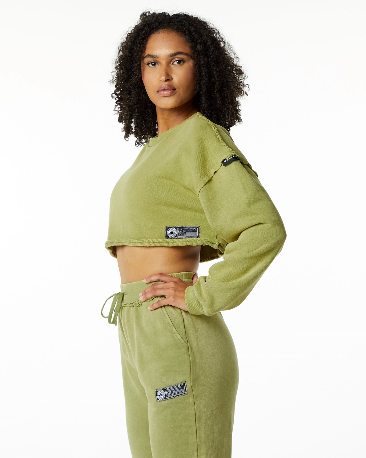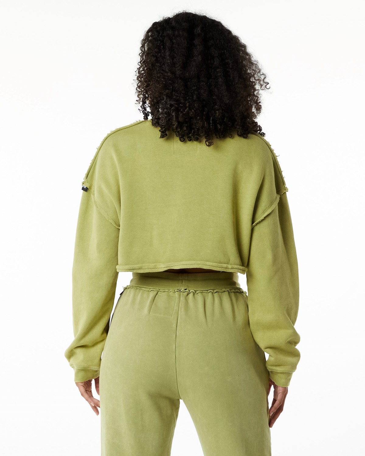 Alphalete Women Heavyweight Washed Terry Crop Pullover Jade Green - Alphalete CZ