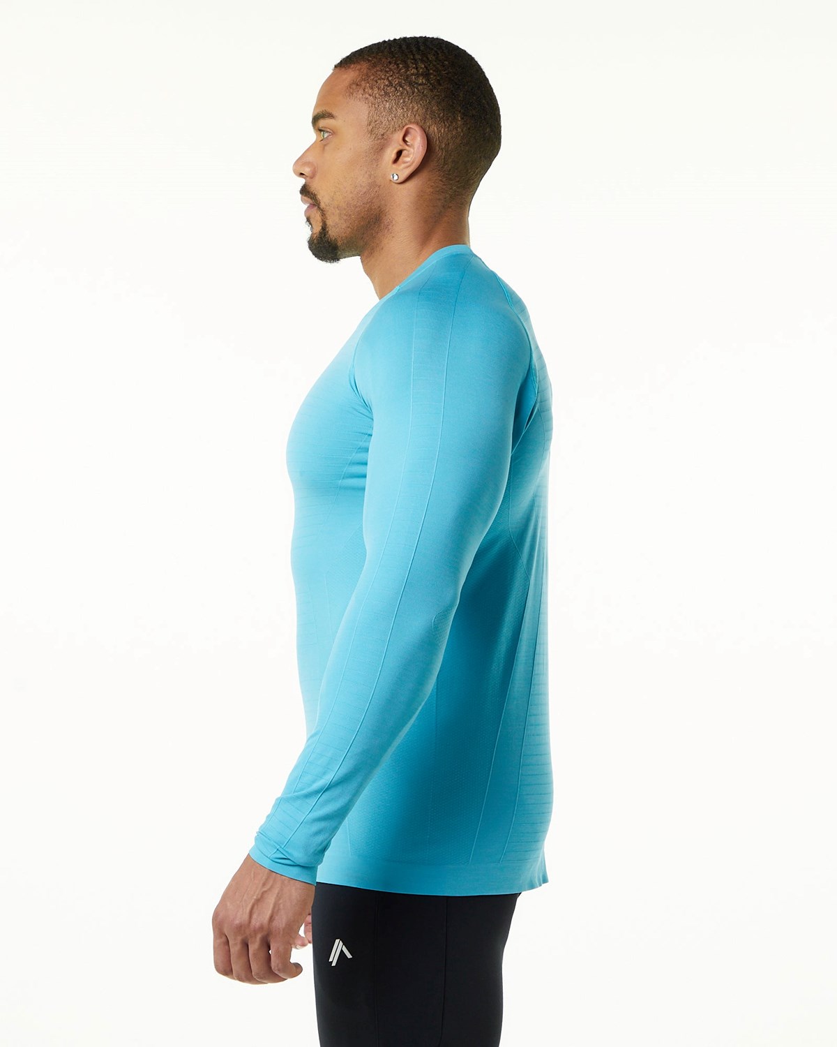 Alphalete Men High Performance Seamless Long Sleeve Tee Faded Ocean - Alphalete CZ