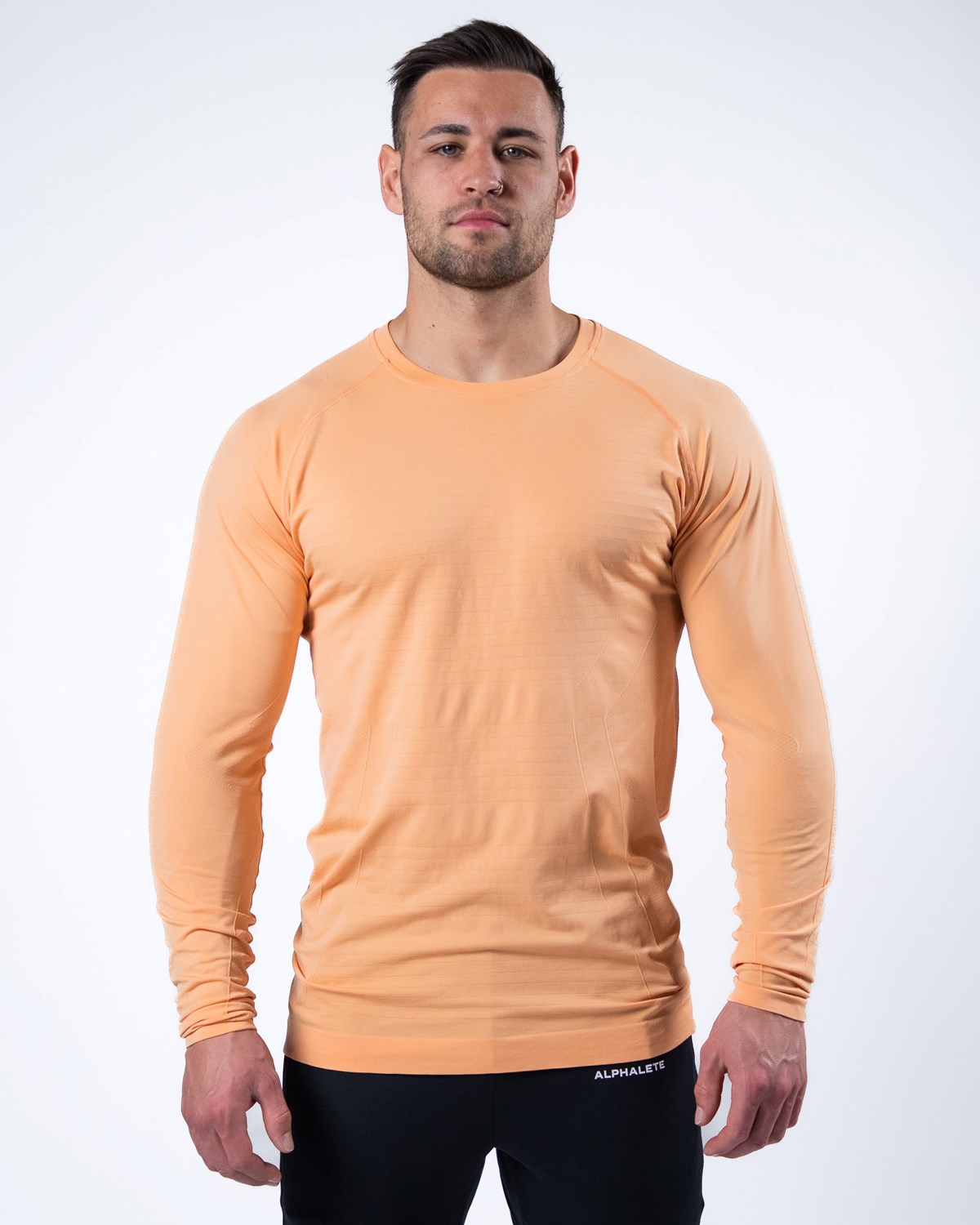 Alphalete Men High Performance Seamless Long Sleeve Tee Cheeky Coral - Alphalete CZ