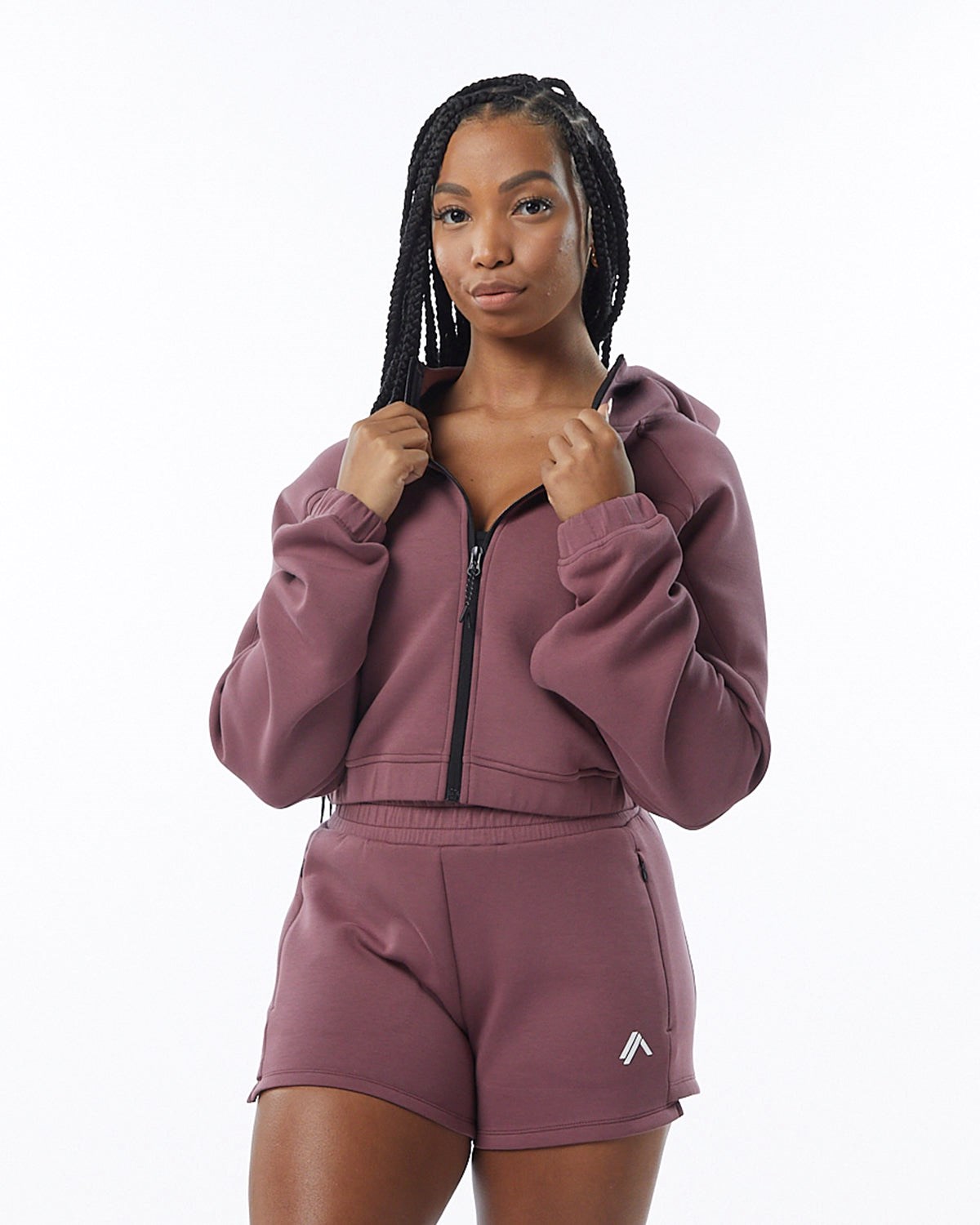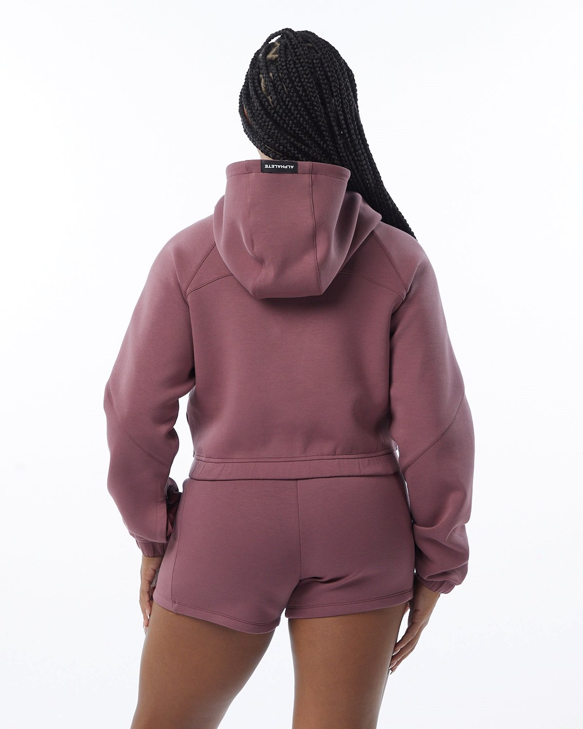 Alphalete Women Interlock Knit Crop-Zip Hoodie Mauve - Alphalete CZ