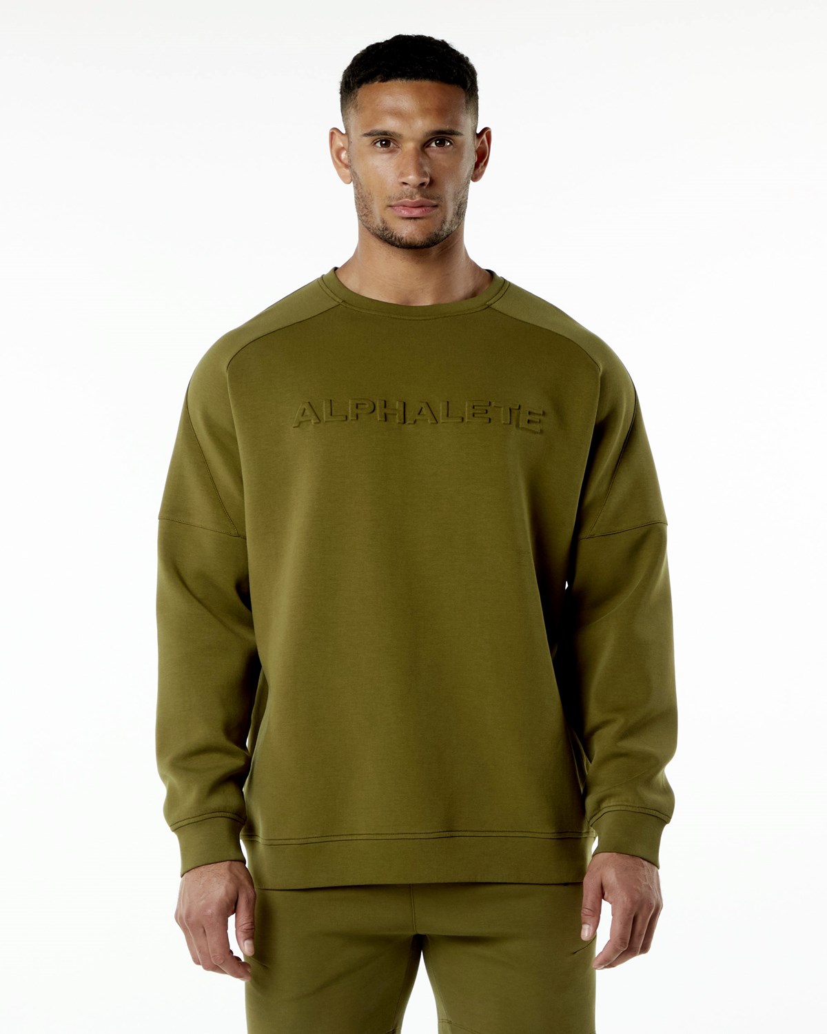 Alphalete Men Relaxed Interlock Knit Pullover Moss - Alphalete CZ